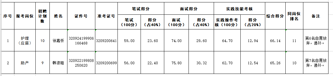 盐城市妇幼保健院2020年公开招聘编外专业技术人员进入体检、考察环节递补人员名单公示