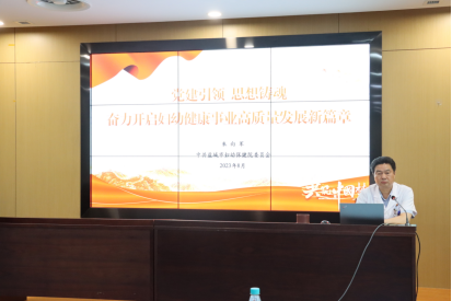 为做好学习贯彻习近平新时代中国特色社会主义思想主题教育相关准备工作,强化全院党员干部职工的责任与担当,以实际行动开创医院高质量发展新局面。8月1日下午,我院党委书记朱向军同志以《党建引领 思想铸魂 奋力开启妇幼健康事业高质量发展新篇章》为题讲授专题党课,院领导班子成员、中层干部、护士长及党员代表参加会议。