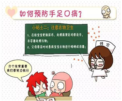 2、加强认识。在手足口病流行期间如果发现宝宝发热、起皮疹或口腔溃疡的症状,应及时到医院就诊,早期诊治,以免延误病情。
