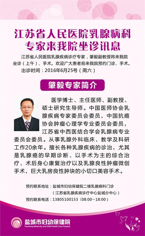 江苏省人民医院乳腺病科专家来我院坐诊讯息