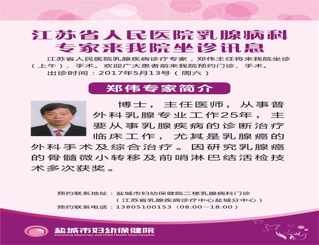 江苏省人民医院乳腺疾病诊疗专家,郑伟主任将来我院坐诊 (上午)、手术