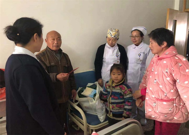 12月1日上午,一场爱心捐款在我院产科进行。原来,39岁的高龄产妇谢艾娣来自来滨海县,因羊水过多腹胀难忍入院。该妇家庭为贫困户,一家四口紧靠三亩农田为生,长女年仅6岁,丈夫已60岁,家里还有年迈老母亲。由于病情需要,需急诊手术,胎儿尚未足月,有去新生儿科治疗可能,当管床医生告知孕妇丈夫相关病情时,其哭诉住院预交的一千元还是亲戚拼凑的,已无力支付更多医药费。