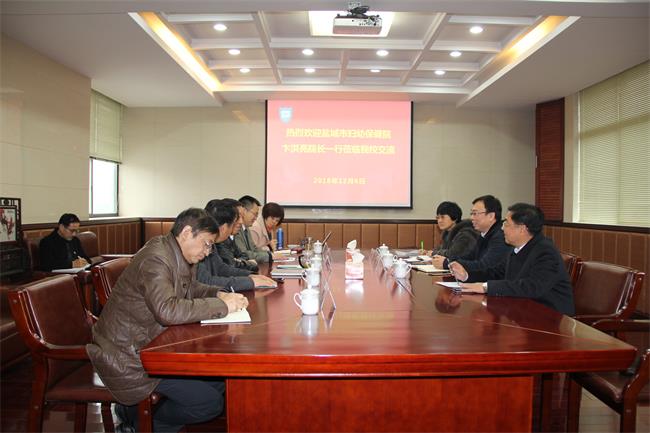 近日,我院院长卞洪亮、副院长陈爱军、科教科科长索虹蔚一行受邀到江苏医药职业学院交流。江苏医药职业学院书记郝达富、院长陈国忠、副院长王辉、高璀乡及办公室、教务处负责人参加此次会议并作交流。