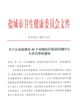 根据国家卫生健康委《2023年国家医疗质量安全改进目标》《全面提升医疗质量行动计划 (2023-2025 年)》和《医疗质量控制中心管理规定》,为进一步加强医疗质量管理,规范临床诊疗行为,促进医疗服务的标准化、同质化,保障医疗质量和安全,盐城市卫健委组织开展了市级医疗质量控制中心遴选工作,盐城市妇幼保健院被确认为盐城市儿科、新生儿科质量控制中心挂靠单位。